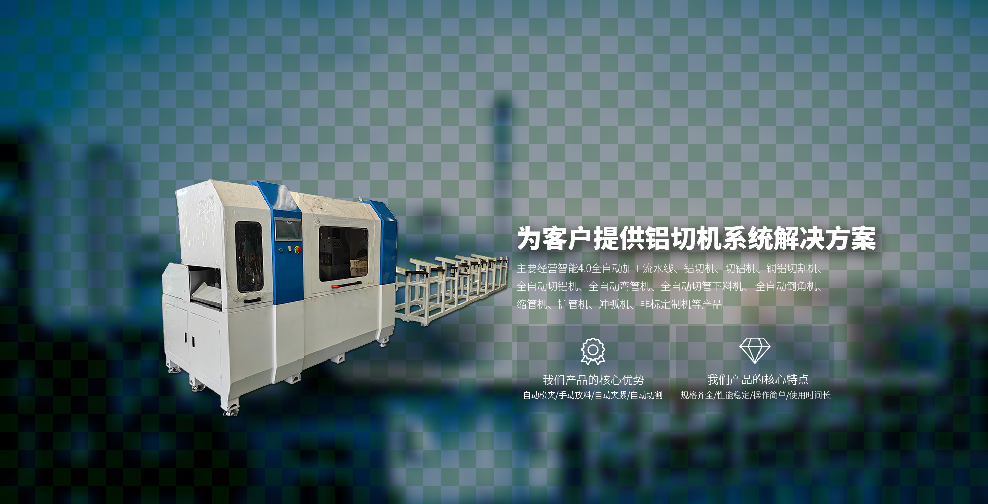 主要經營智能4.0全自動加工流水線、鋁切機、切鋁機、銅鋁切割機、全自動切鋁機、全自動彎管機、全自動切管下料機、 全自動倒角機、縮管機、擴管機、沖弧機、非標定制機等產品